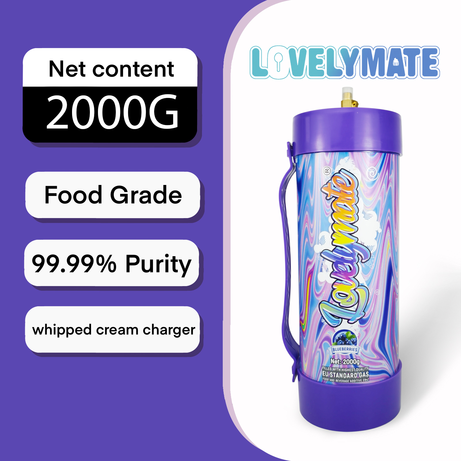 Lovemate Whipped Cream Chargers 3.3L – 2100g Blueberry Flavor Whip Cream Charger Cylinder (Blueberry Flavor ,1PCS)