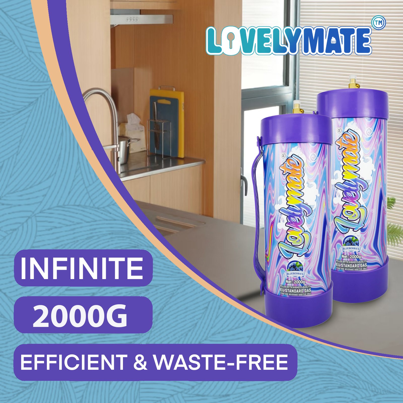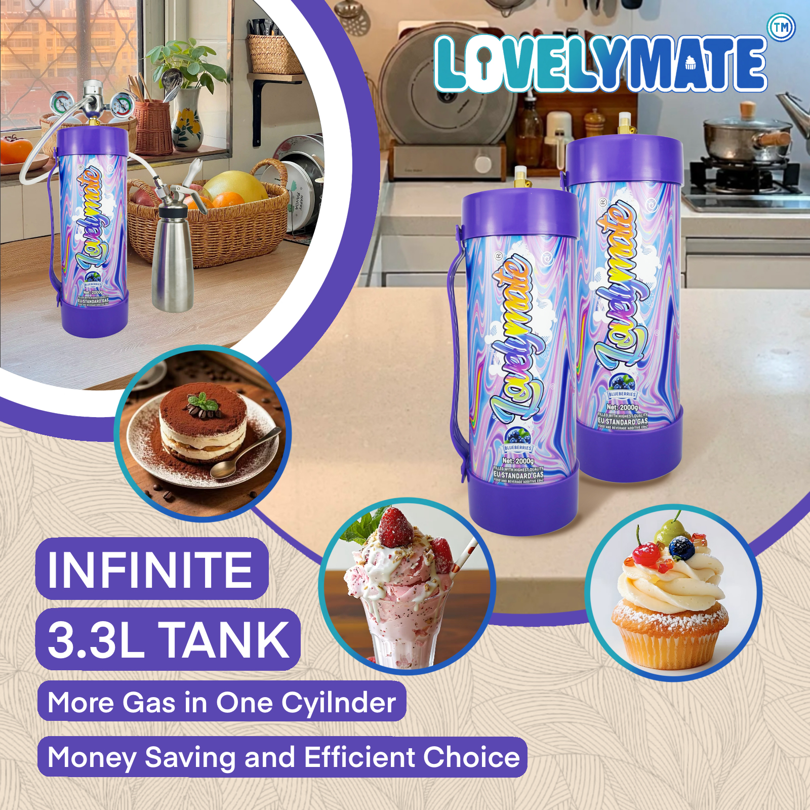 Lovemate Whipped Cream Chargers 3.3L – 2100g Blueberry Flavor Whip Cream Charger Cylinder (Blueberry Flavor ,2PCS)