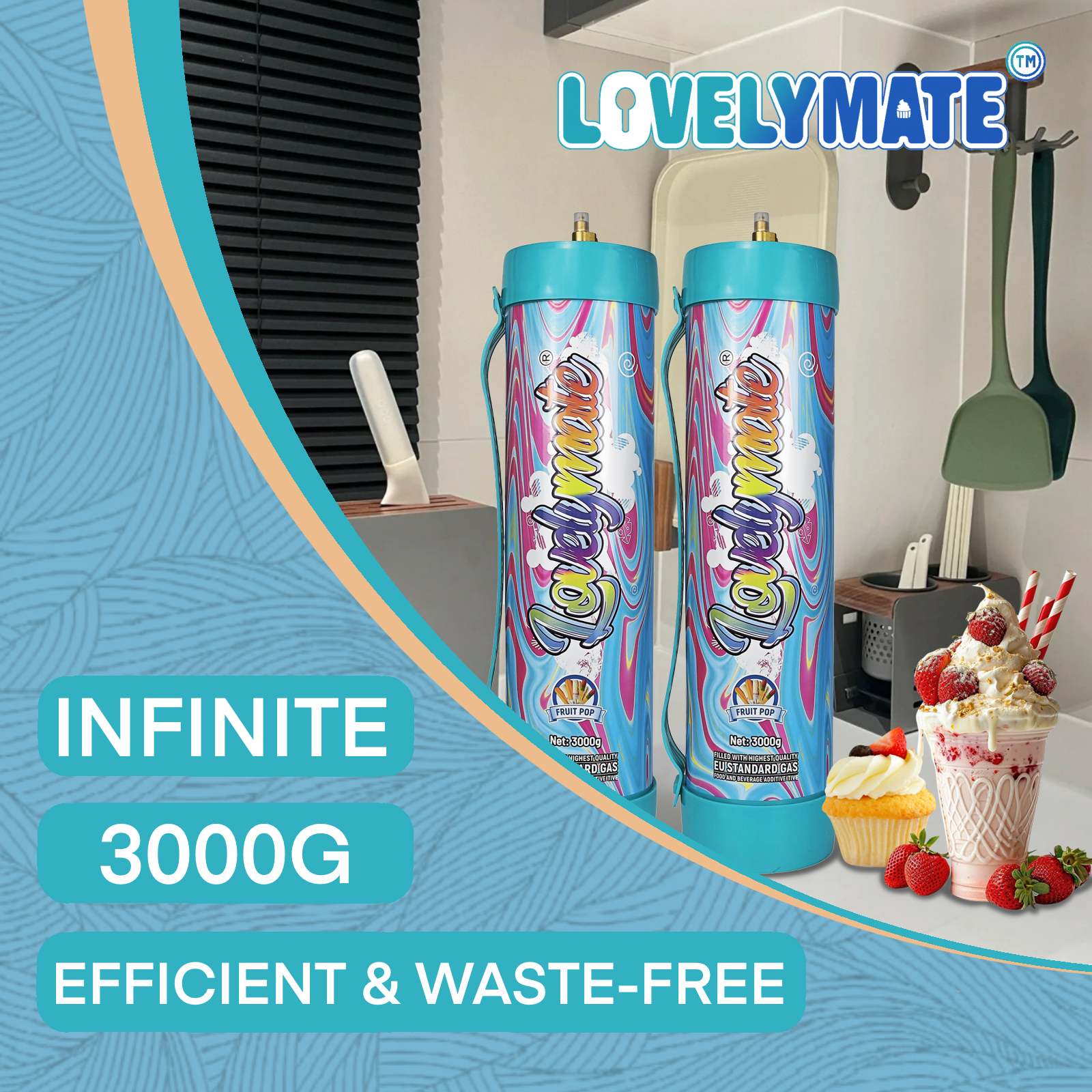 Lovemate Whipped Cream Chargers 4.4L – 3000g Fruit pop Flavored Whip Cream Charger Cylinder (Fruit pop Flavored, 2 PCS)