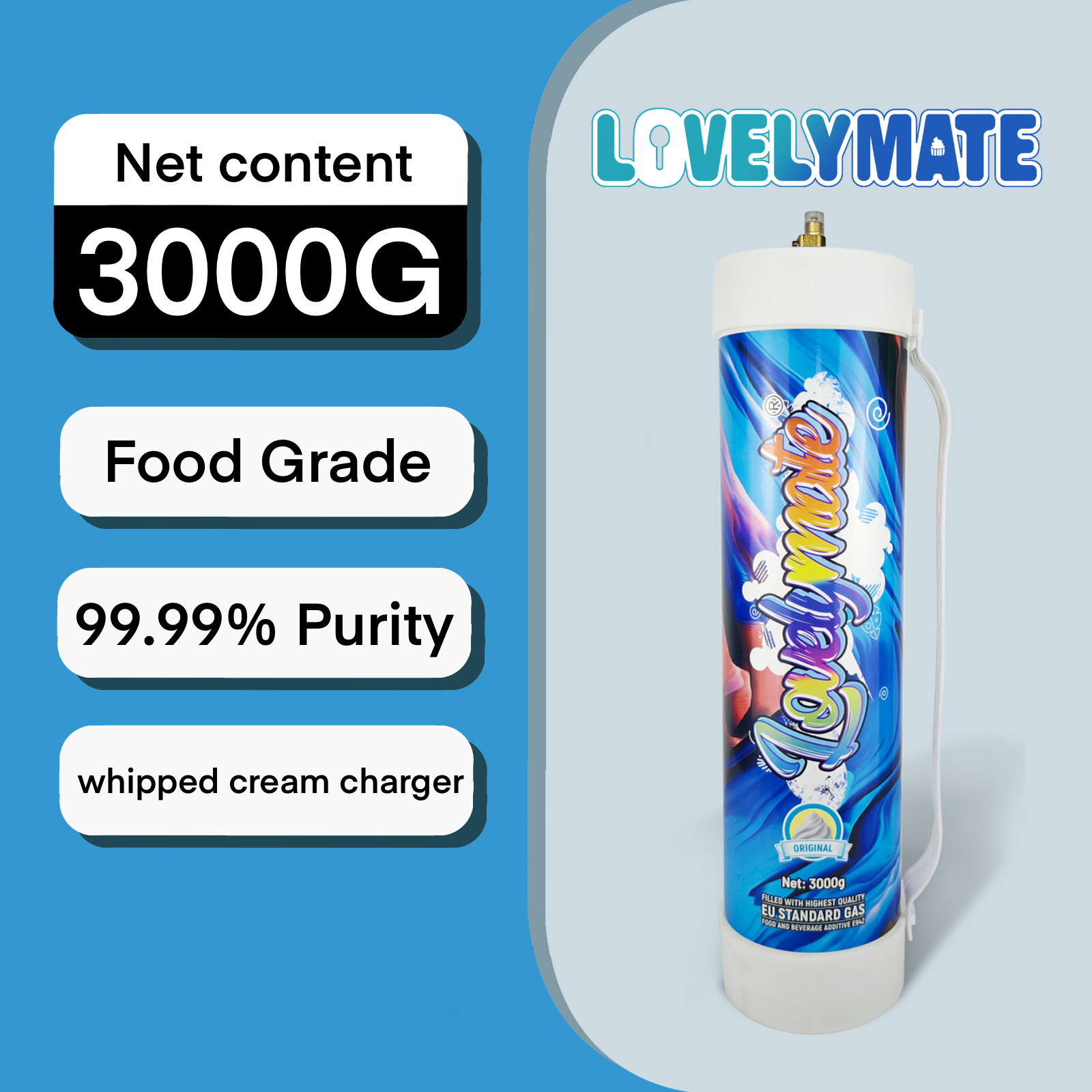 • Lovemate Whipped Cream Chargers 4.4L – 3000g Whip Cream Charger Cylinder